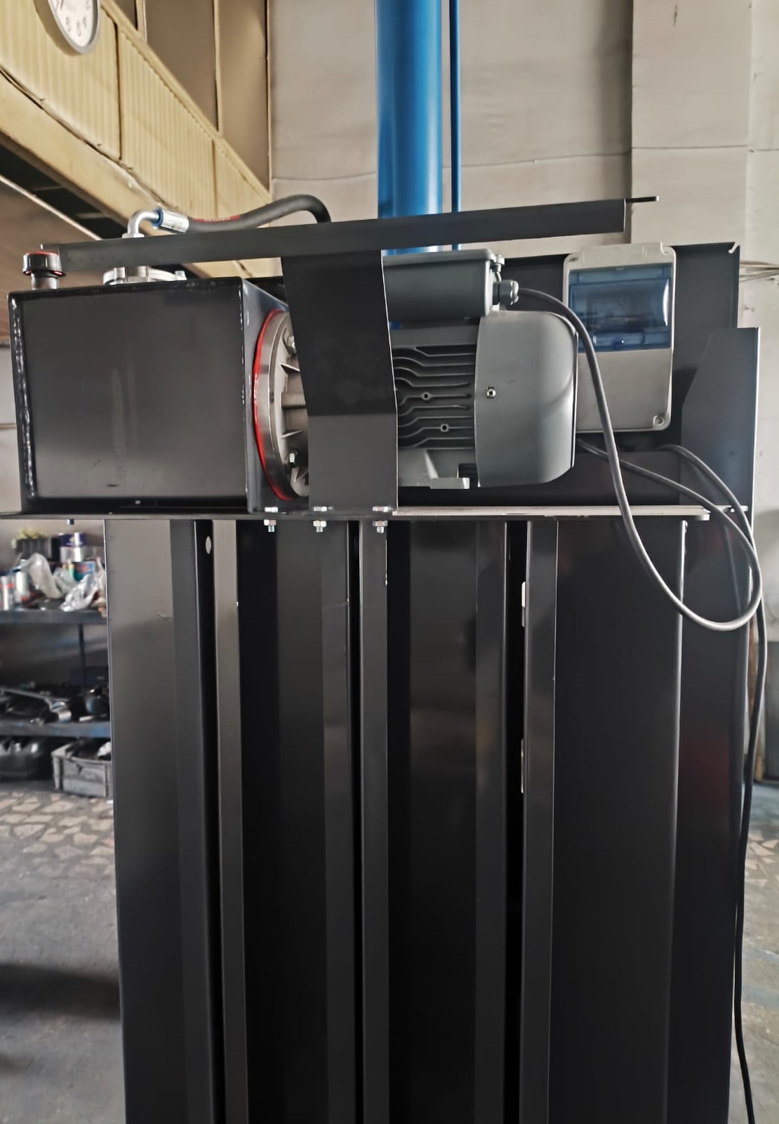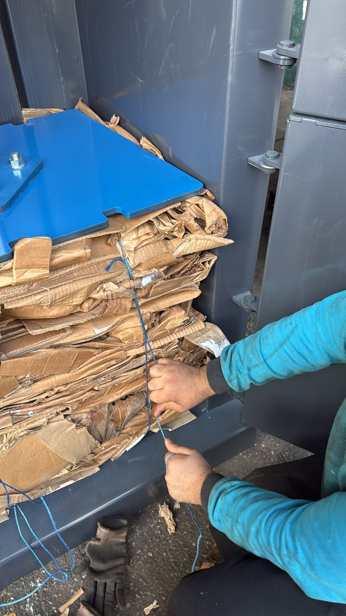 Instalace vertikálního lisu TONNA10 je poměrně jednoduchá. V podstatě vše, co musíte udělat, je připojit tlak vzduchu a zapojit elektřinu a můžete vyrazit. Prvním krokem po instalaci lisu na lepenku je vytažení mačkacího kladiva nahoru, takže prostor, kam budete vkládat odpad, je prázdný. To lze provést jednoduše posunutím rukojeti. Poté je třeba vložit odpadní materiál do lisu na lepenku. Vertikální lis můžete naplnit plastem, dřevem, kartonem, papírem, sklem a také dalším odpadem. Naplňte jej až po okraj lisu na lepenku. Poté stiskněte rukojeť a hydraulické kladivo se začne pohybovat dolů a tlakem mačkat odpadní materiál. Proces mačkání může trvat několik minut. Po skončení mačkání pohněte rukojetí a zvedněte kladivo. Vlivem tlaku bude materiál stlačen v balíku, který je třeba ručně svázat drátem nebo popruhem. Když je balík svázán, otevřete dvířka recyklačního lisu a vyjměte balík rukama nebo vysokozdvižným vozíkem.