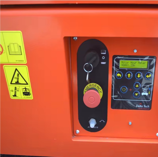 Pomocí proporcionálního joysticku se pohyb plynule upravuje pro přesné zdvihání a jízdu. Rychlost jízdy je automaticky omezena při zdvižené plošině pro zajištění bezpečnosti. Pro vysunutí pracovní plošiny operátor uvolní výsuvný pedál a ručně vysune plošinu až o 0,9 metru. Nouzové spuštění lze aktivovat pomocí ventilu na ovládání ze země, pokud je to potřeba. Zdvihák je vybaven alarmy signalizujícími přetížení, náklon nebo poruchu. Po použití musí být plošina plně spuštěna, napájení vypnuto a kola zajištěna před nabíjením.